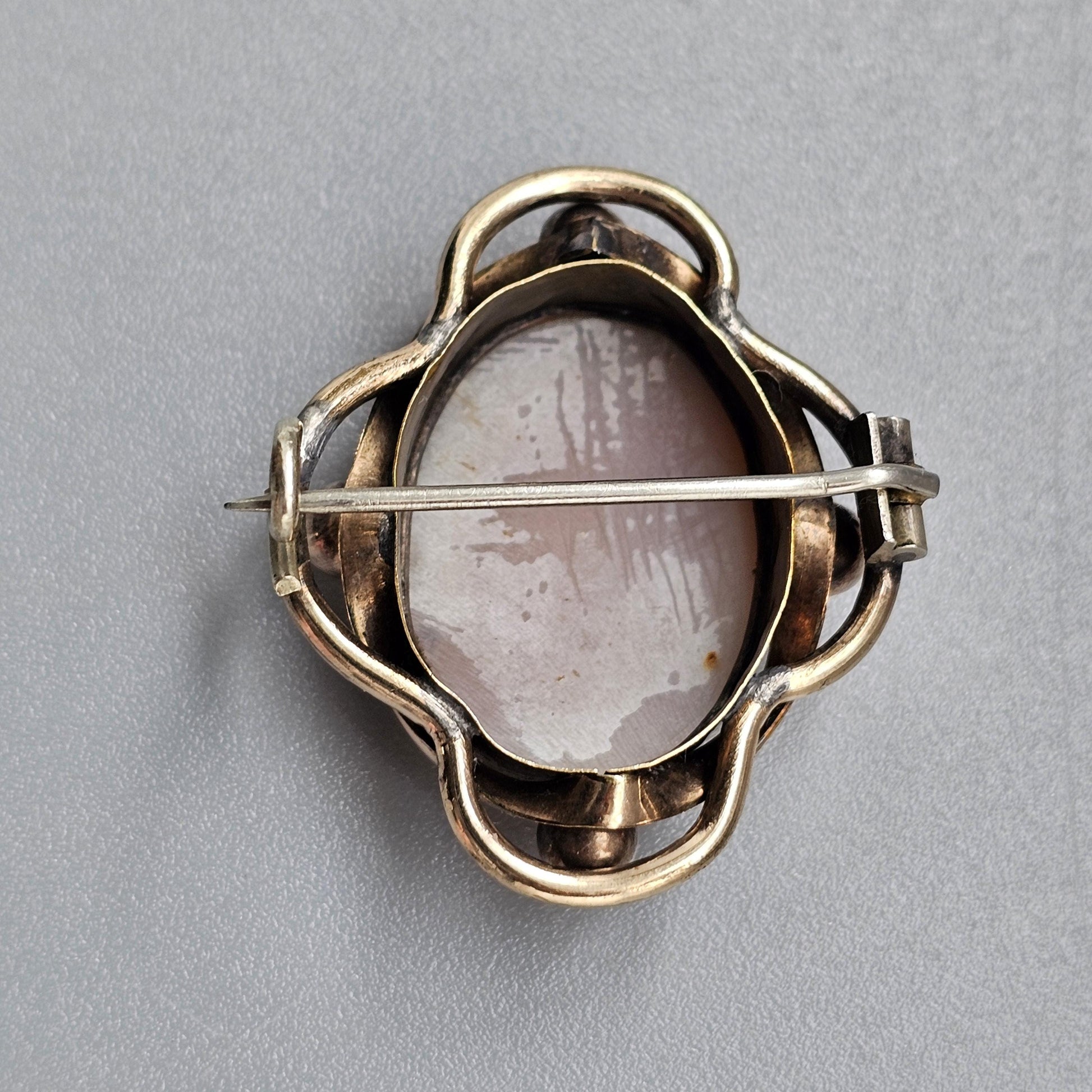 Small Antique Victorian Carved Shell Cameo Gold Tone Pinchbeck Brooch
