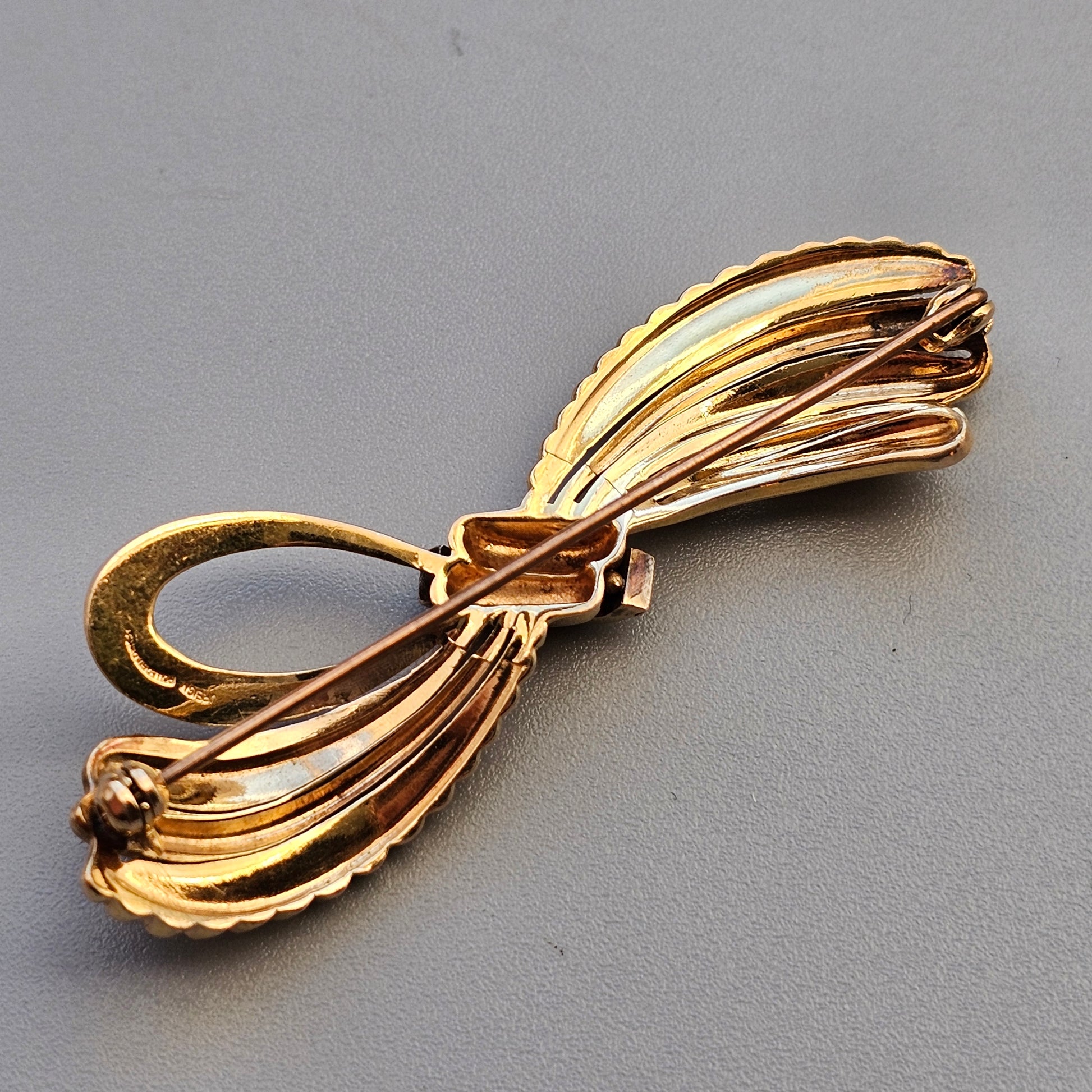 Vintage Rolled Gold Ribbon Bow Brooch by Kollmar & Jourdan